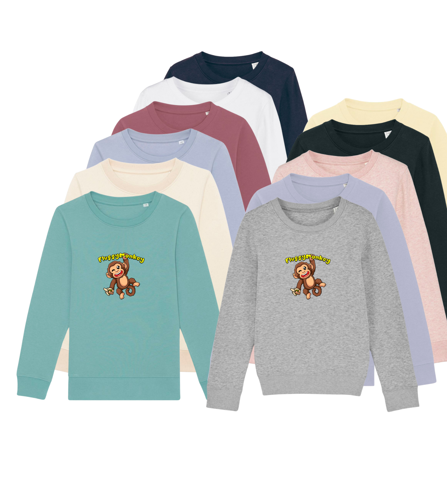 Entdecken Sie das Fluffymonkey Iconic Kinder Rundhals-Sweatshirt, das Herzstück unserer Kollektion für nachhaltige Kinderbekleidung. Gefertigt aus einer Mischung aus gekämmter ringgesponnener Bio-Baumwolle und recyceltem Polyester, repräsentiert dieses Sweatshirt den nächsten Schritt in der umweltfreundlichen Mode für Kinder. Mit seiner weichen Textur und dem klassischen Design fördert es den Wohlfühlfaktor und das umweltbewusste Stilgefühl.